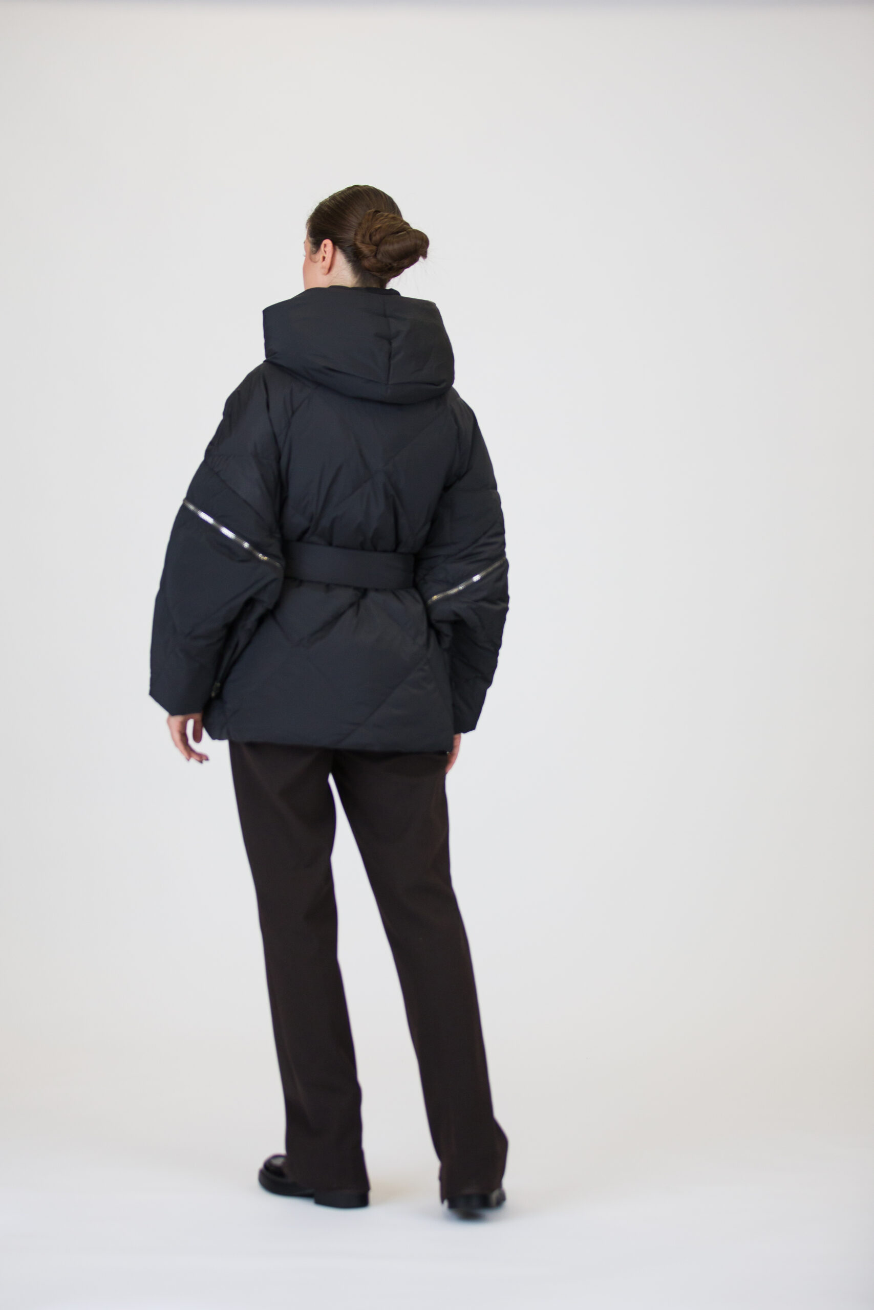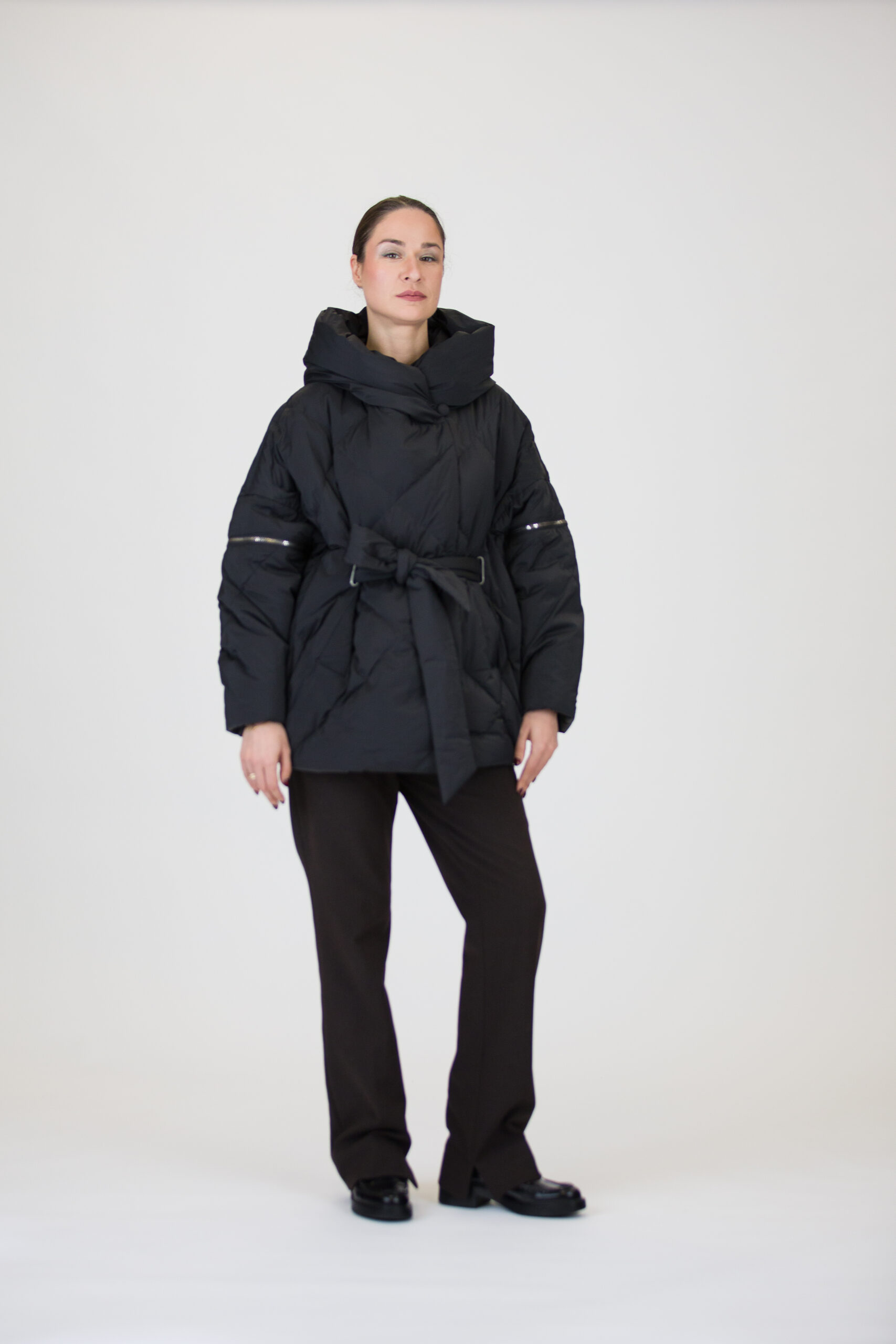 Chiago firmos trumpa striukė su dirželiu, tinkanti žiemos sezonui.